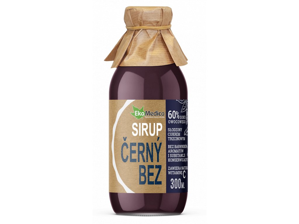 Ovocný sirup z černého bezu s přídavkem přírodního vitamínu C získaného z extraktu z plodů aceroly - doplněk stravy. Pasterizováno.