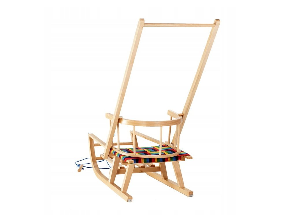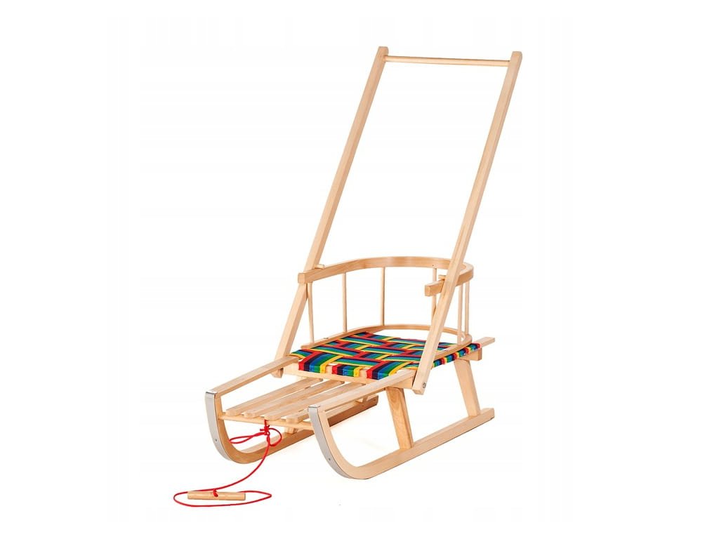 Dřevěné sáňky s opěradlem + posunovač + měkké sedadlo