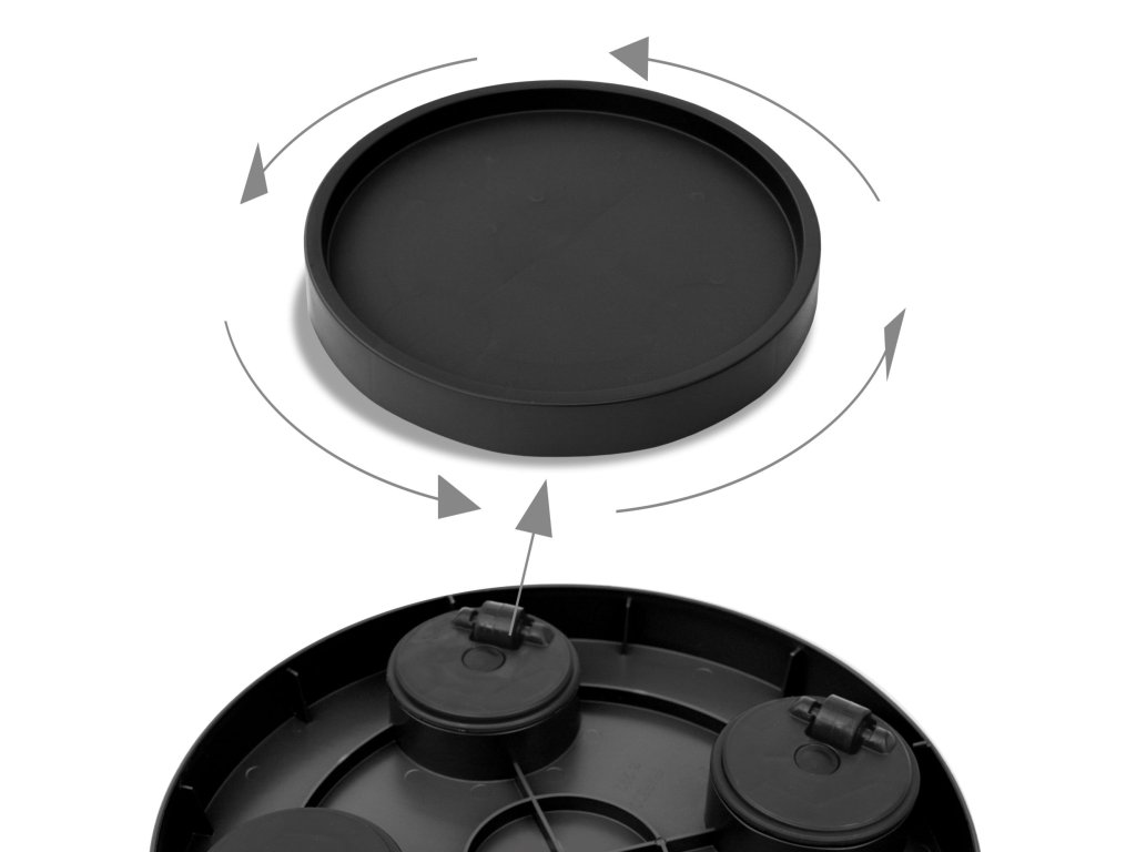 Kulatá základna na kolečkách vyrobená z vysoce kvalitního plastu. Disponuje systémem 4 stabilních válečků otočných o 360°, díky čemuž umožňuje pohodlné přemisťování rostlin v květináčích.