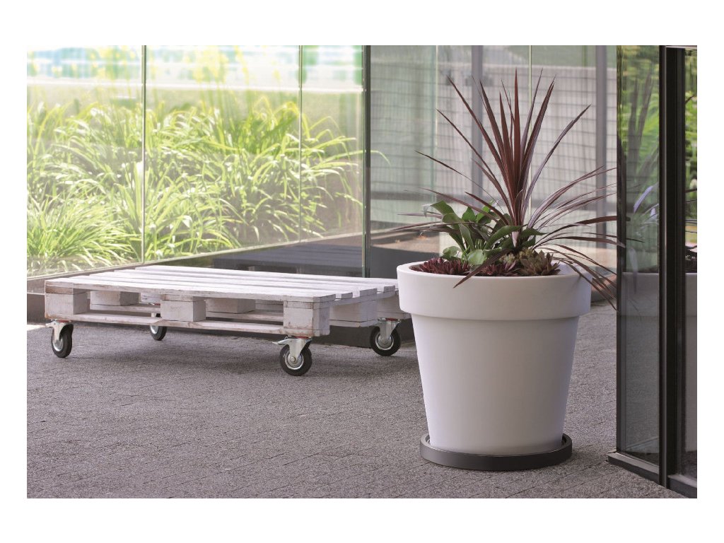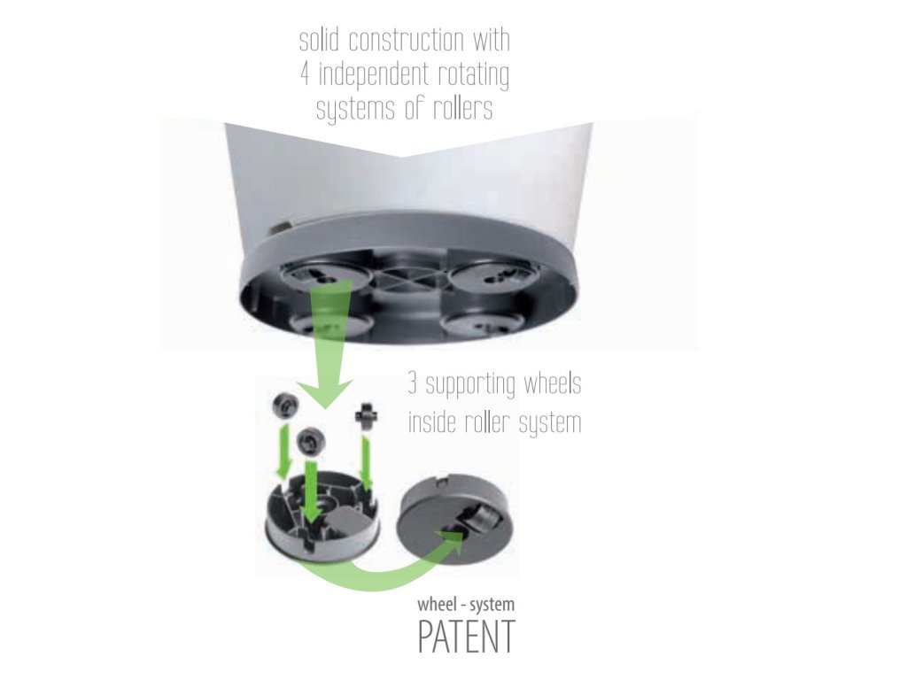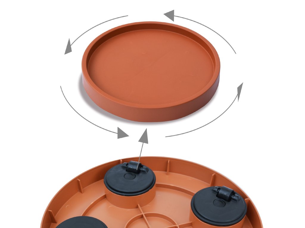 Kulatá základna na kolečkách vyrobená z vysoce kvalitního plastu. Disponuje systémem 4 stabilních válečků otočných o 360°, díky čemuž umožňuje pohodlné přemisťování rostlin v květináčích.