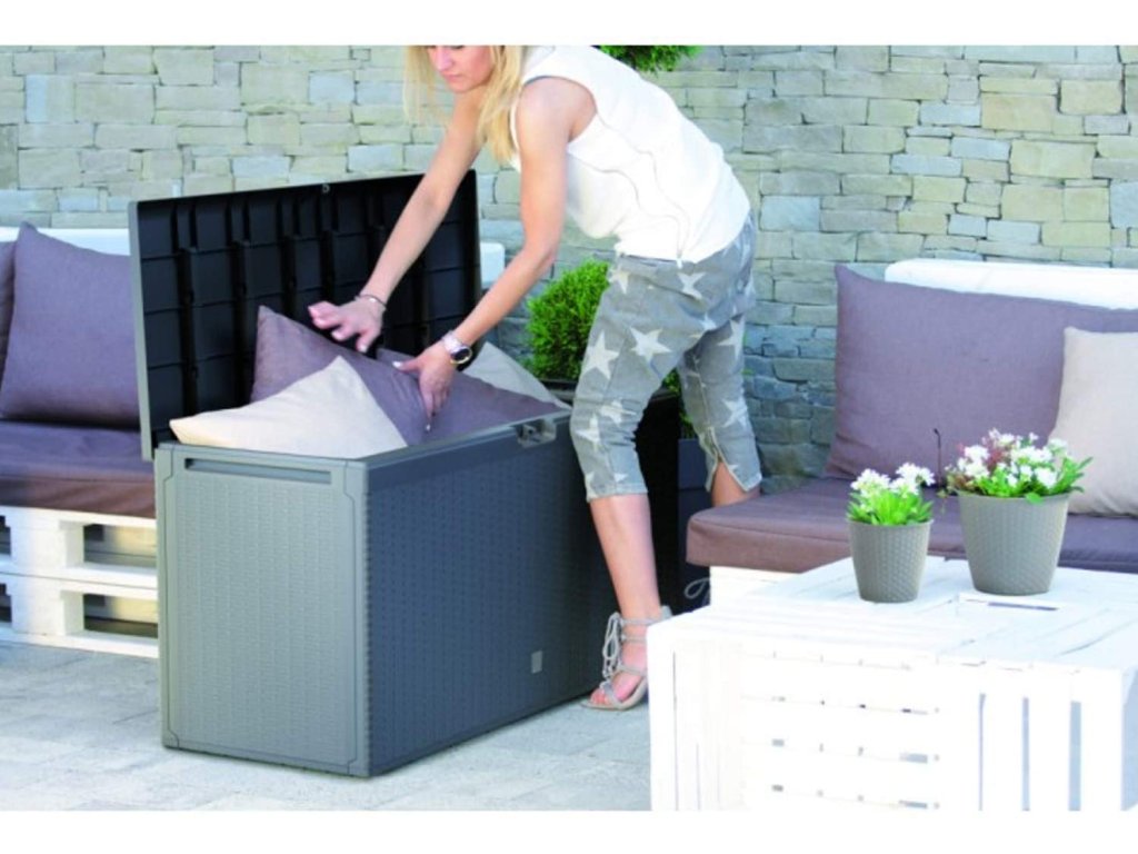 Prosperplast Boxe Rato Plus, skladování zahradního boxu, úložný box, ratanový 290L tarras (antracit)
