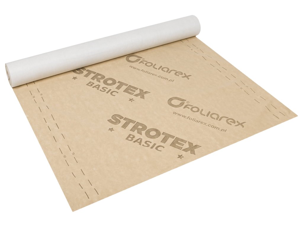 STROTEX Basic je difuzně otevřená fólie určená pro venkovní zastřešení. Je také vynikajícím větroizolačním materiálem určeným pro stěny budov v skeletových konstrukcích. Díky vysokému součiniteli Sd se používají u střech s tepelnou izolací do celé výšky krokví.